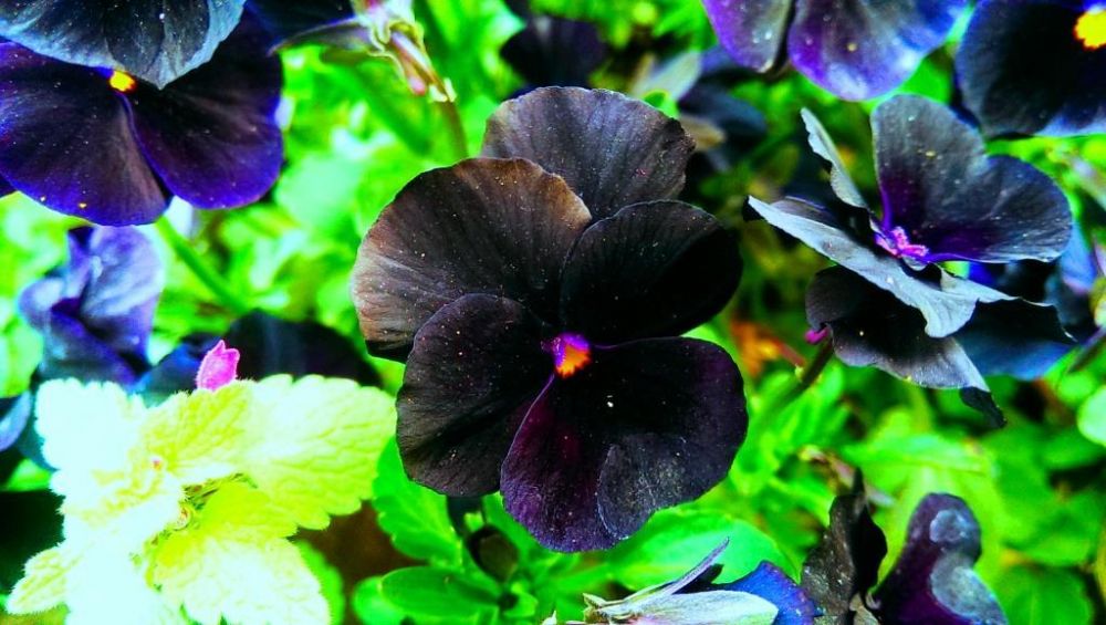Анютины глазки. В первый момент кажется, что они сожжены костром, но это обманчивое впечатление. Селекционеры смогли взорвать мозг.
