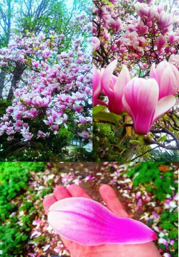 Магнолия. Нежные лепестки этого огромного цветка устилают всю землю. Они такие сказочные, напоминают цветик-семицветик. Так и манит загадать желание.