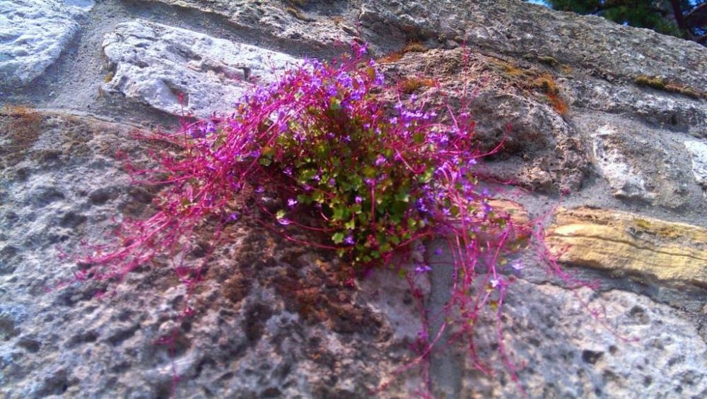 Фиалки на камнях. Нет, это не горшок на камнях, просто прилетело семечко, зацепилось за каверну в камне, проросло и сумасшедше радуется жизни.