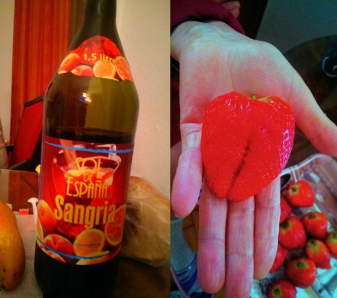 А что у нас было на ужин? Конечно же великолепная Сангрия (не то, что у нас так называется, а действительно, Сангрия) и ароматная, сладкая, тающая во рту гигантская клубника.