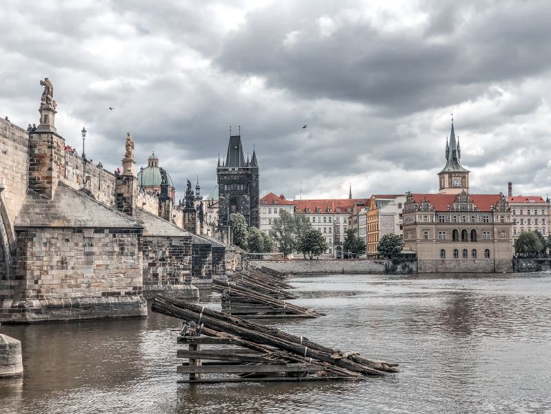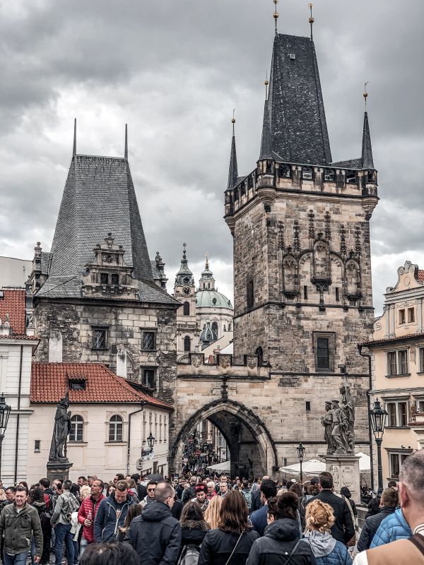 На каждом берегу Влтавы вход на Карлов мост охраняют башни —Староместская и Малостранская.