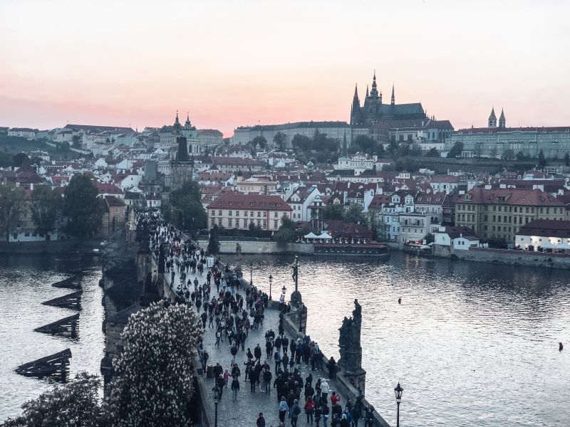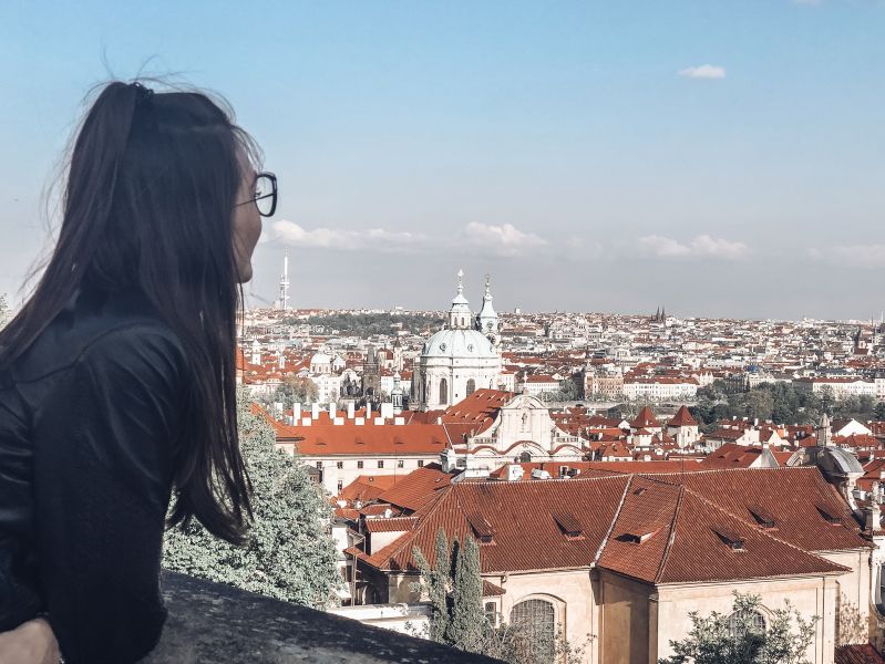 Прагу называют городом красных крыш. С холма открывается классический открыточный вид из мозайки черепичных крыш, которые делают этот город не похожим ни на один другой.