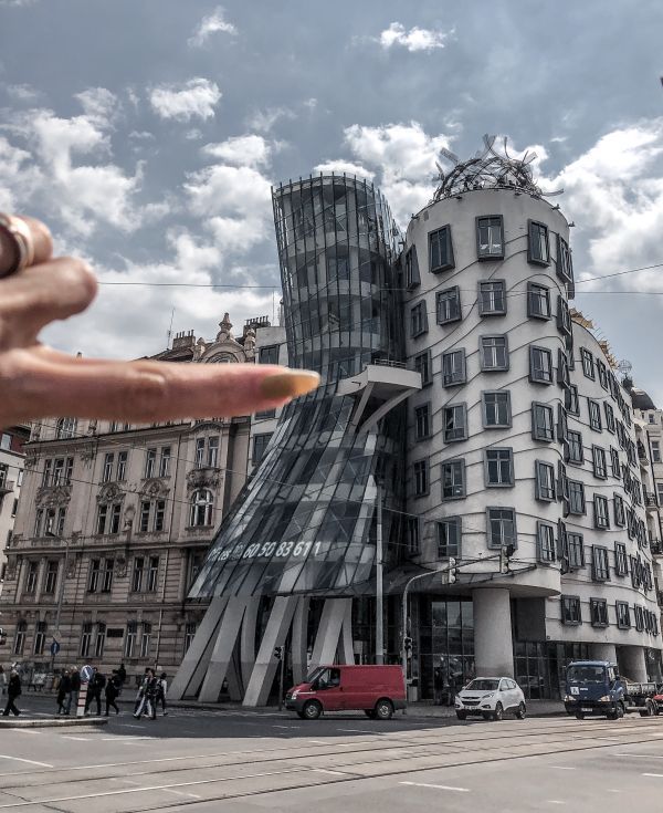 Еще одна сравнительно молодая достопримечательность Праги – танцующий дом, также известный как «Джинжер и Фред». Символ современной архитектуры, олицетворяет танцующих мужчину и женщину.