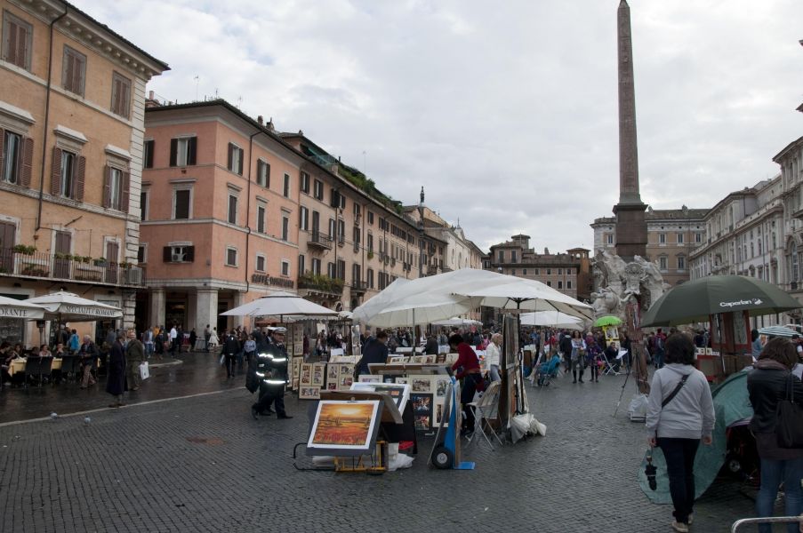 3) Справа как раз Колонна Трояна, продолжаем гулять в сторону Пантеона, выходим на площадь Навона. Здесь можно засидеться надолго: фонтан, художники, сувенирчики да и просто красивая архитектура.