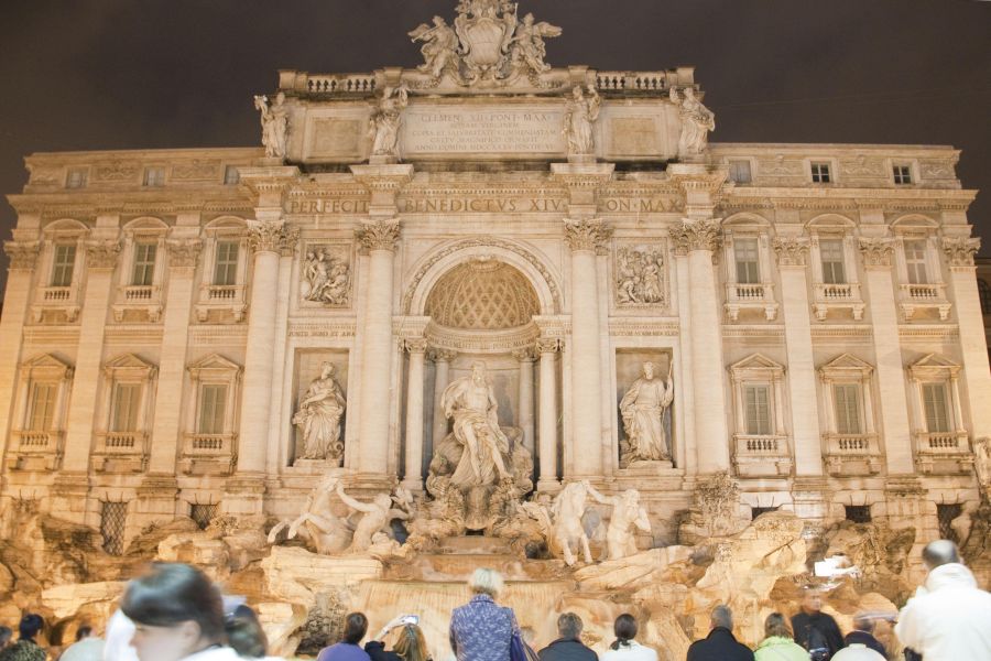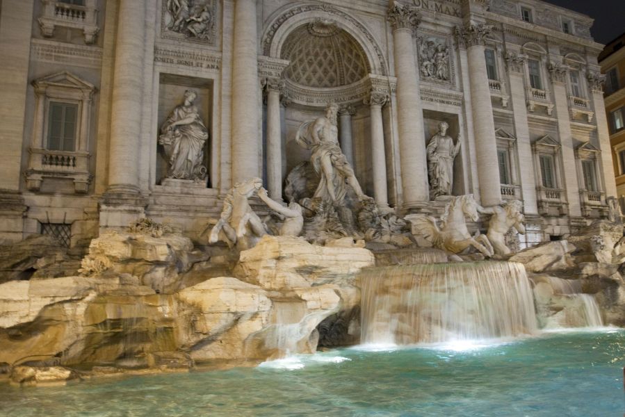 Раньше этот фонтан был источником питьевой воды в городе, акведуком. Если рассматривать ансамбль, вы заметите Нептуна в центре, который въезжает на колеснице в виде морской раковины, запряжённой двумя лошадьми: одна спокойная, а другая буйная, как две стороны водной стихии или человеческой натуры. С этим фонтаном связано много поверьев и легенд. Влюблённые могут испить воду из трубочек с правой стороны, чтобы любовь их была вечная. И конечно же, каждый хочет бросить монетку, чтобы вернуться в Рим ещё раз. А в неделю власти вытаскивают около 10 тыс евро монеток. Говорят, на благотворительность отдают…