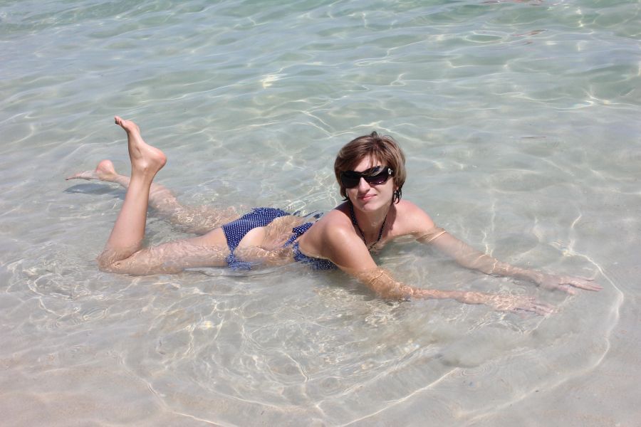 Нежная прохлада коснулась кончиков пальцев. Я медленно провела рукой по воде, любуясь бликами от солнца. Мелкие песчинки дотронулись до кожи и проскочили между пальцев. Лазурная прозрачная и тёплая вода манила зайти поглубже, но я сидела по щиколотку в воде, зачарованная диковинными рисунками на дне. Рядом проплыл косяк мелких рыбёшек и, увидев мои ступни, резко подался в сторону. Мягкий и белый песок щекотал лодыжки. Под водой крабик бежал за травинкой, оставляя после себя облако песчаного дыма. Маленькая закрученная ракушка опустилась в ладошку. Вот оно - море, такое ласковое и приветливое.