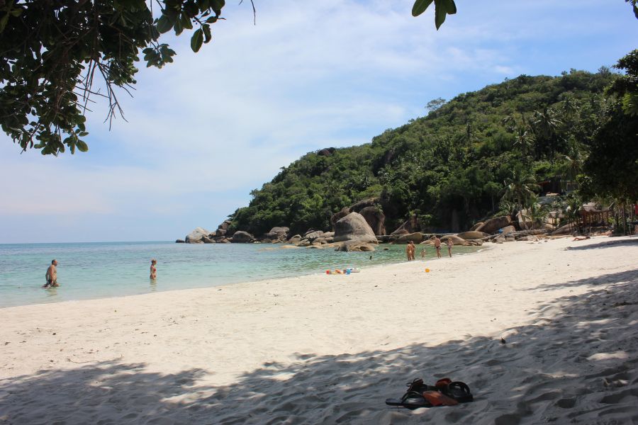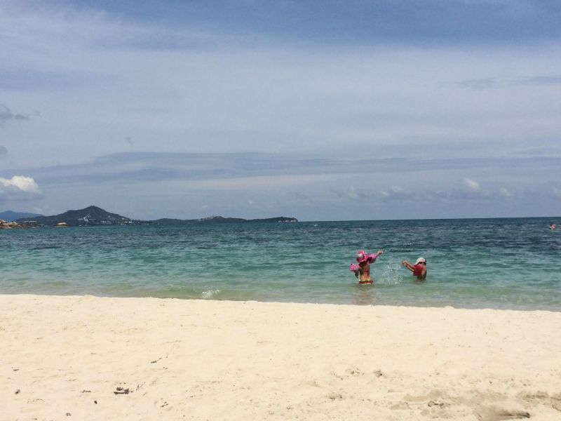 5. Choeng Mon. Этот пляж я открыла совершенно случайно. Как-то раз жарким зимним днём меня одолевала грусть, я поехала на пикапе развеяться вокруг острова. Проезжая магазинчики и кафешки, решила прогуляться пешком. Миновав территории отелей, я вышла на замечательный пляж. Совсем рядом находился необитаемый заросший остров, во время отлива можно было туда доплыть и побыть настоящим Робинзоном. Но будьте осторожны, на дне острые кораллы. Не рекомендую пешком переходить. Зато на пляже в тени из кафешки умопомрачительно пахнут жаренные морепродукты. Море здесь мелкое и горячее, дети могли сидеть целый день.