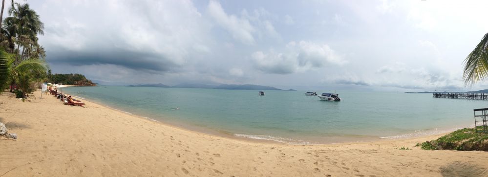 2. Lamai. Здесь были расположены офисы агентов по недвижимости, поэтому после проделанной работы мы сразу и опробовали пляж. Длинная и широкая береговая полоса, чистое море, немного волн. Недалеко, кстати, мы нашли русское кафе Огурцы, где отобедали блинчиками с крокодильим мясом и окрошкой. Ностальгия, знаете ли.