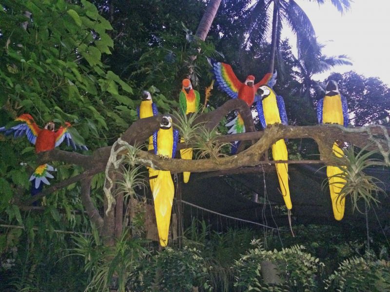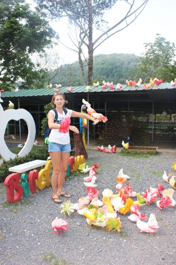 На входе в Парк нас встретили улыбчивые тайцы и предложили кулёчки с едой для животных. От многообразия и красок разбегались глаза. В клетках и на земле расхаживали разноцветные голуби, порхали яркие птички, от чириканья и весёлых песен звенело в ушах.