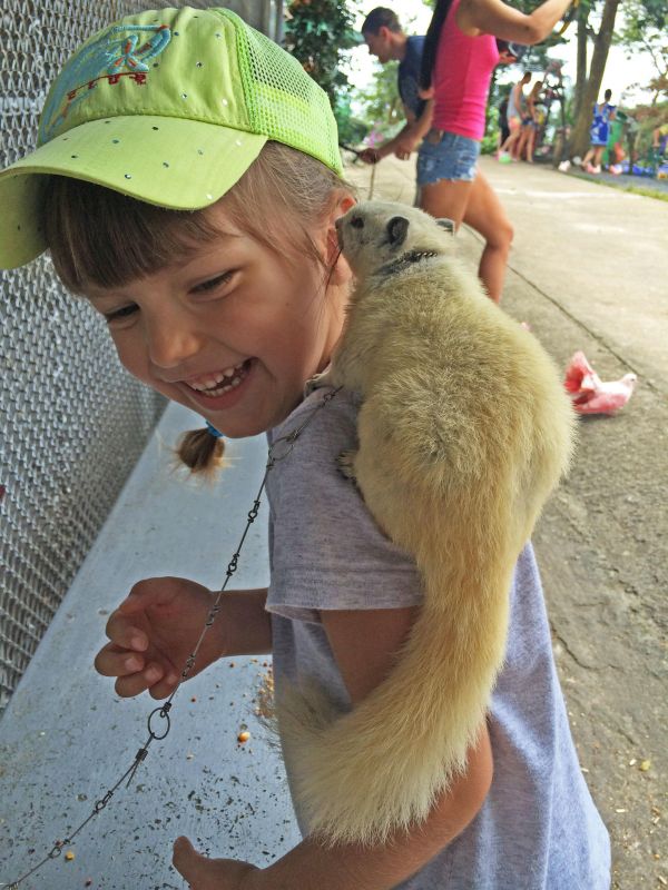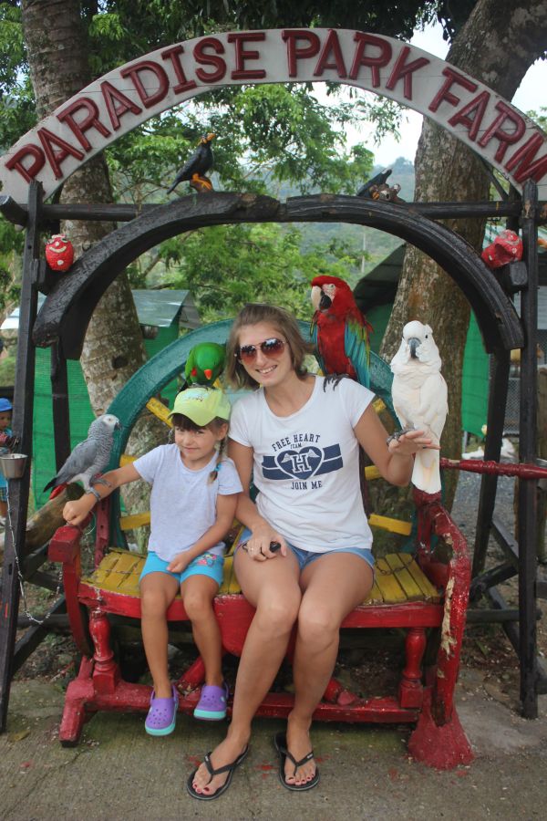 Все хотели сфотографироваться с колоритными попугаями. Пока мы ждали своей очереди, дети обступили клетку с жако и ара, пытаясь добиться у них фразы «Привет», но тщетно. Наконец, настала моя очередь для фотосессии, на меня водрузили несколько птиц и велели улыбаться. Честно говоря, было немного страшно. Вы видели их когти? Тем более, что один из них уже начал выстукивать клювом по кепке дочки. Я сидела, боясь пошевелиться, и молилась, чтобы когти не проткнули моё плечо. О том, чтобы улыбаться и речь не шла. И тут разноцветный красавец раскатистым голосом на чисто русском языке прямо на ухо мне прокричал «Да ррррасслааааабься ты». Все вокруг покатились от смеха, а у меня наконец получилось расслабиться и улыбаться. Так что за хорошими фотками и психологической поддержкой можно обращаться напрямую к попугаю Джеку.