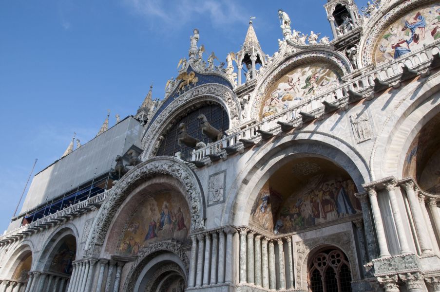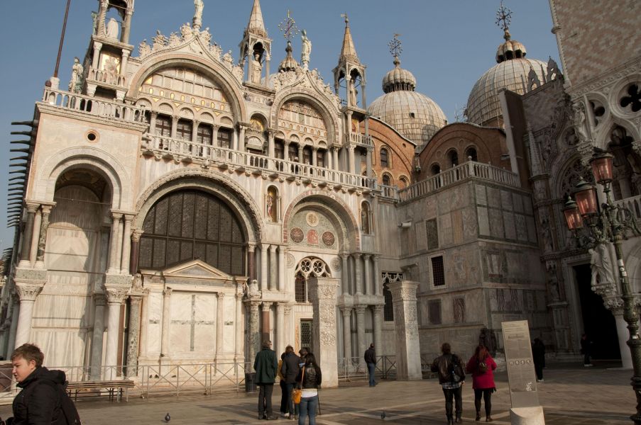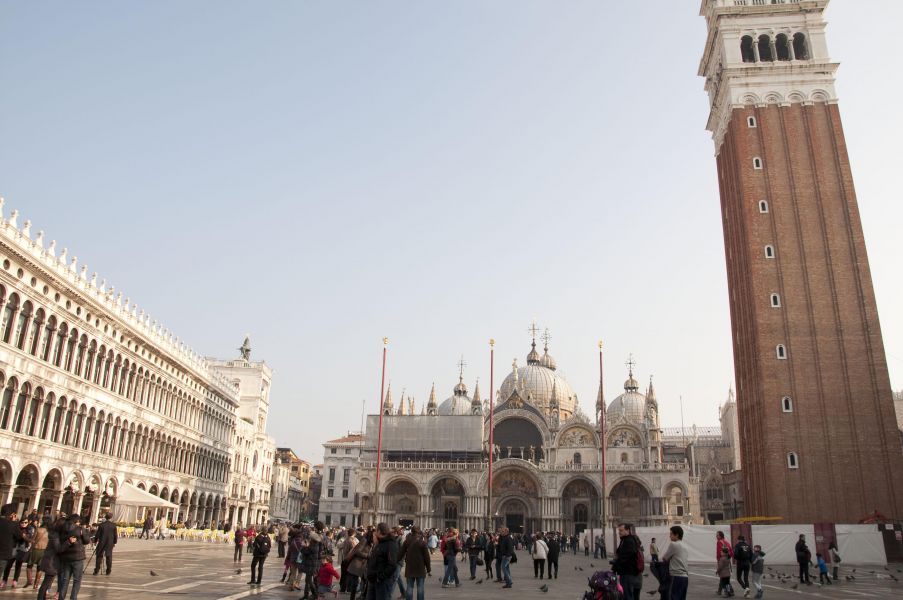 Площадь просто чудесная! Нарядная, радостная, светлая. Все достопримечательности под рукой: Собор Святого Марка (в капелле хранятся мощи апостола Марка), Часовая Башня Святого Марка (XV в, с астрономическим циферблатом, обращённым в сторону Адриатического моря), Кампанила собора Святого Марка (кажется, на неё можно подняться и полюбоваться панорамой), Дворец Дожей (здесь жили правители влиятельной Венецианской республики).