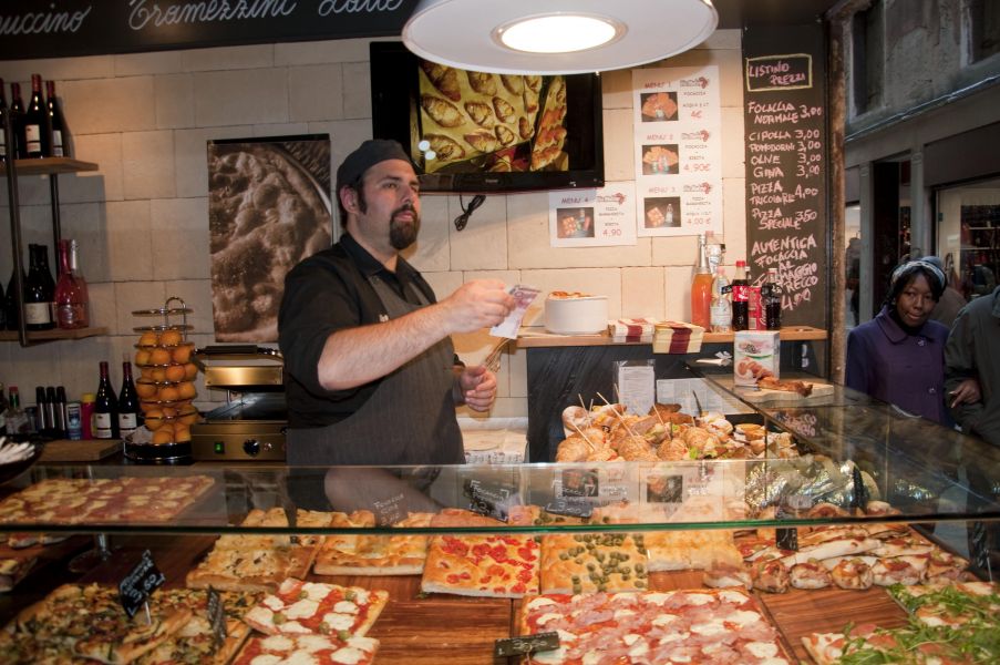 Нам дали несколько часов свободного времени, и мы побежали искать еду. Пицца 3-3.5 евро, что-то комплексное от 5 евро, вкусняшки 7 евро. Можно было прогуляться по мостикам, узким улочкам, заглянуть в брендовые магазины, полюбоваться мурановским стеклом. Не ждите, что оно будет стоить дёшево, и не ведитесь на уличных торговцев. Я присмотрела бусики за 50 евро, но зажала, поездка-то у нас бюджетная была.