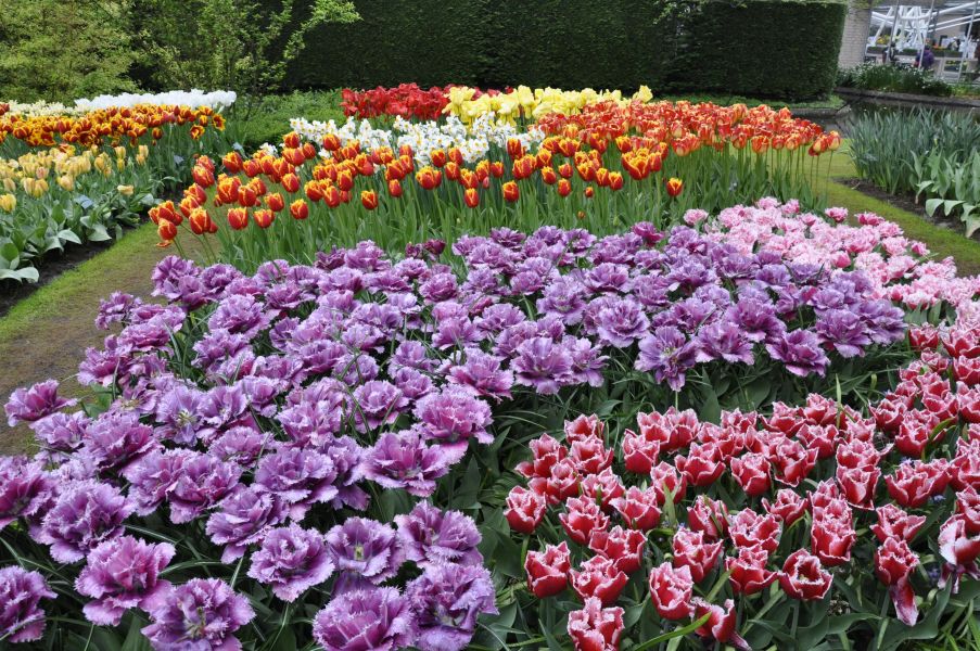 Парк Кёкенхоф – это уникальное место на планете. Это сад на 32 гектара. Это примерно 3200 футбольных полей! На которых растут примерно 7 миллионов цветов! Это же рай для девушек. Причудливые лужайки из необычных композиций, более 100 разновидностей только тюльпанов! А ещё на территории парка три павильона: горшочные растения, розы-тюльпаны-гвоздики-какие-то ещё, орхидеи. Между прочим, последний павильон является личным павильоном принцессы Нидерландов. Да-да.