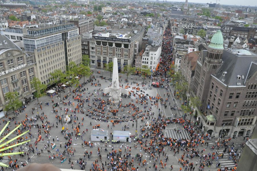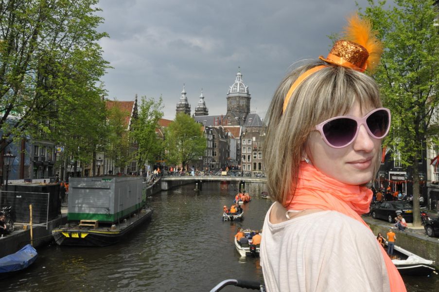 На следующий день мы вышли на улицу и не узнали город. День Короля – это отвал башки! Это значит, что все ВСЕЕЕЕЕЕ люди вокруг обязательно одеты во что-нибудь оранжевое (цвет Короля), что угодно: шарфик, парик, футболка, кепка, носки – не важно, главное, что у тебя есть оранжевый цвет! И эта яркая река из людей вытекает из всех улиц и проулков и выплёскивается на площадь у Ратуши.