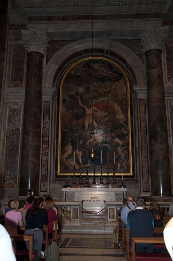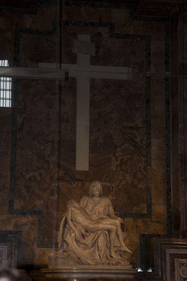 6) Пьета. Справа от входа за пуленепробиваемым стеклом Дева Мария держит Христа на руках. 24-летний Микеланджело Буонарроти в мраморе смог передать тончайшие элементы одежды, тела, эмоций, противопоставляя живое мёртвому, мужское женскому, нагое прикрытому, горизонтальное вертикальному. Перед такими шедеврами хочется стоять вечно, любуясь изгибами рёбер, выступающими сосудами на ногах, налитостью мышц. Только гений смог бы передать эти нюансы в камне. И на каждого гения найдётся псих, эта скульптура пострадала от рук маньяка, который отбил кусочки пальцев Марии. Реставраторам пришлось потрудиться, потому что такого же вида мрамора найти уже не удалось. С тех пор статую отгородили стеклом от варваров подальше. Двадцать четыре года… Что я в этом возрасте делала?