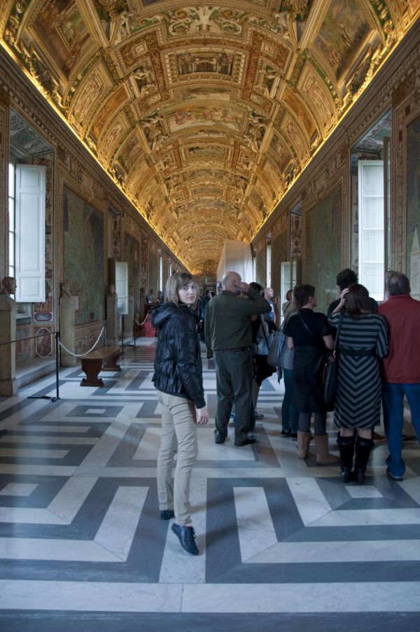 3) Вообще музей Ватикана (17 евр) – это место «ахов» и «вздохов», потому что у меня уже лёгкие начали болеть от всех моментов удивления и восхищения. Статуи, мозаика, карты на стенах (120 м), а потолок – это просто что-то невероятное: золото, красота, великолепие.