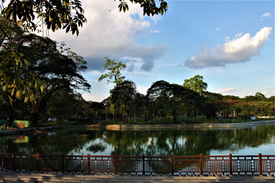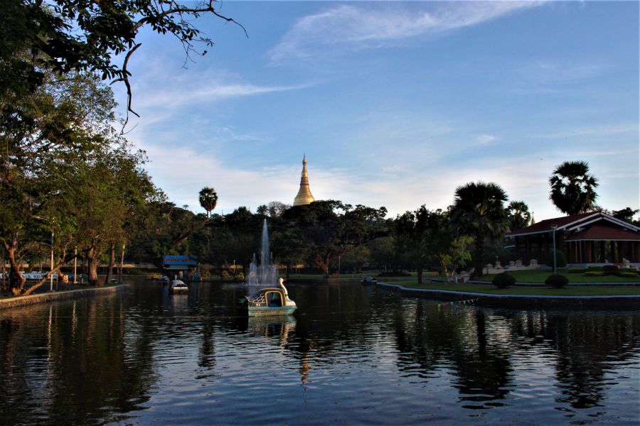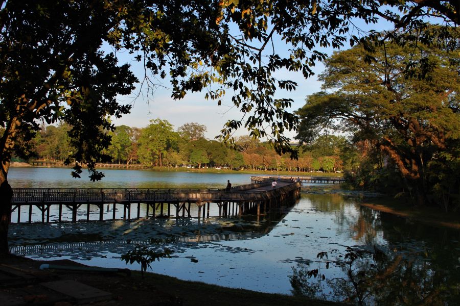 Вторая часть прогулки – конечно же, Шведагон. Но он оказался закрыт. Возможно, сказалось 31 декабря, но английским, достаточным, чтобы объяснить причину не владел никто. Полицейские в оцеплении могли сказать только «Ноу», не понимая ни одного вопроса насчет «А завтра?», «А когда откроется?», «А почему?» и т.д. Потом, ни девушка с ресепшена гостиницы, ни водитель такси, мне этого объяснить тоже не смогли, причем, явно чувствовалось, что хотят, но слов и фантазии не хватает. Чтож, у меня был еще вечер последнего дня, из-за этого пришлось пораньше вернуться с пляжного курорта, но это я забегаю вперед. А сейчас я пошел вокруг территории, которую занимает Шведагон, чтобы посмотреть достаточно известный парк Кандауджи. Приятное, тихое место для такого оживленного города, неплохие пейзажи. Там же находится знаменитый ресторан Каравейк, в который возят всех организованных туристов. Славится не очень хорошими отзывами, из-за дороговизны, неестественности национального шоу и не очень вкусных блюд, я не стал проверять, вернулся в гостиницу ещё немного отдохнуть и подготовиться к вечерней вылазке на празднование Нового года.