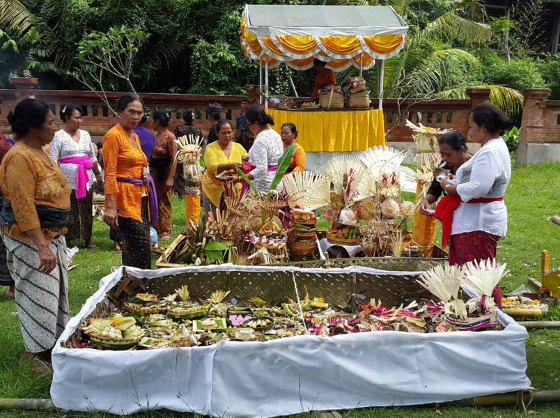 Запах местных благовоний #дупа, хоровод мужчин в длинных юбках-саронгах и головных уборах удангах, женщины в ярких гипюровых блузках, разноцветных саронгах, подвязанных поверх поясом-шарфом в цвет или не всегда в цвет. Гора подношений, барабанная музыка, танцоры и актеры. Очень яркое и живописное событие...как и любая церемония на Бали. Можно описывать бесконечно...