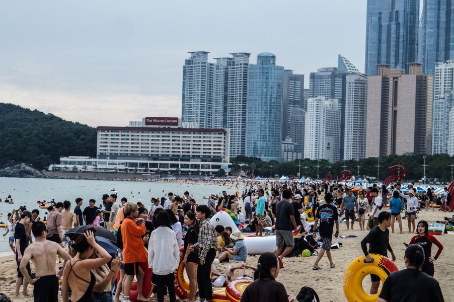 Огромная толпа туристов, протяжённый пляж с приятной водой, вид на высотки, молодёжная улица Gunam-ro – это всё про Хэундэ. Здесь можно взять плавательные круги на прокат и купаться весь день, а вечером на пляже начинают работать кафе с морепродуктами и соджу.