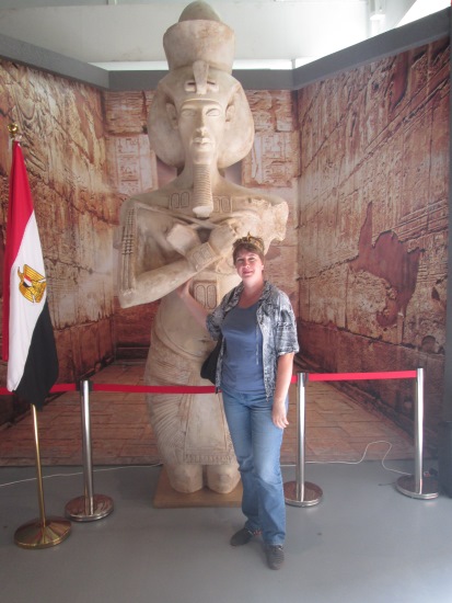 На выходе мне предстояло поклониться фараону Эхнатону (Аманхотену-4), который ввёл в древнем Египте монотеизм, приучив египтян поклоняться одному единственному Богу Солнца – Атону. Ещё он известен тем, что его женой была знаменитая красавица-Нифертити. Какие-то бесы толкнули меня покуситься на их семейную идиллию, и я в диадеме Нифертити сделала компрометирующее фото с её супругом. Надо будет поскорее отмолить свой грех на исповеди.