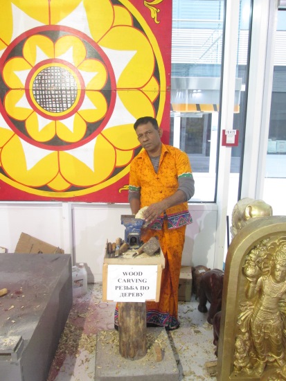 В павильоне Шри-Ланки энергично трудились ювелир, огранщик и мастер резьбы по дереву.