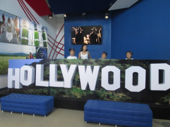 Американцы по всем параметрам остались верны себе: знаменитая вывеска «Hollywood» внутри павильона и два классных презентационных фильма внутри зрительного зала, на которые, как вы догадались, распространяются авторские права, поэтому их нельзя было снимать. Вот она, энергия киноиндустрии! Приятно было, что в первых кадрах фильма со знаменитой американской улыбкой и со словами приветствия на трёх языках к гостям выставки обратился посол США в Казахстане Джордж Крол.