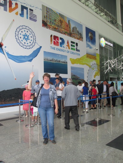 В моих планах по завоеванию ЭКСПО-мира значился и Израиль. Значится он и в моих мечтах в туристическом аспекте. Пока я ждала очереди у павильона, решила сделать фотографию для моих московских подруг Марины Литвак и Алисы Орловой-Вязовской. Я знаю, что им будет очень приятно, что в тот момент я думала о них!