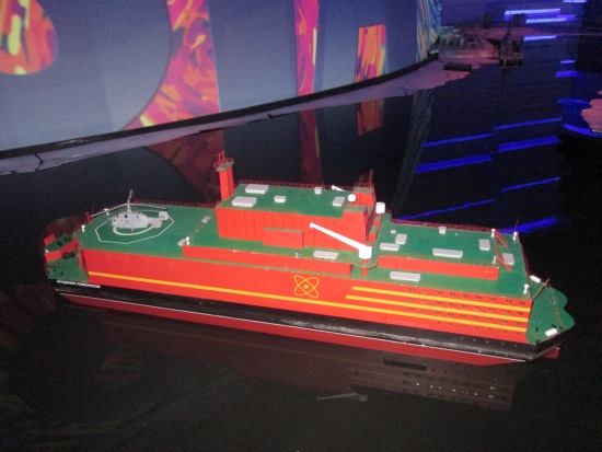 Рассказывая об энергии будущего, россияне сделали ставку на энергию Арктики и атомную энергетику. Посетители смогли увидеть макеты атомных ледоколов, среди которых ледокол «Лидер», способный пробивать лёд глубиной более 4,5 метра.