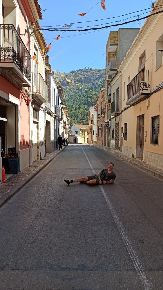 Велы приковали к стене валенсийской дачи и поперлись дальше в гору на собственных лапищах. 7км пешком по дорожкам и камням вверх и столько же вниз с 0.5л воды на двоих в 25о жару - спасали только честно взятые с дерева апельсины.