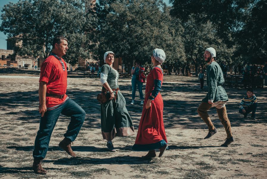 Во-первых, потанцевала средневековые танцы. На таких мероприятиях они по типу "два притопа, два прихлопа", так что каждый осилит.