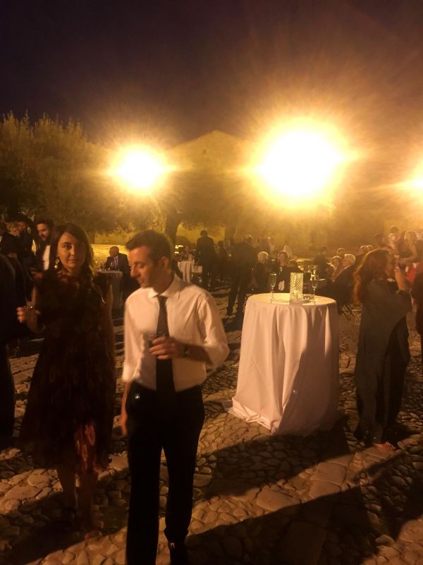 Дальше всех гостей приглашают на праздничный ужин. Проходит он во внутреннем дворе виллы. Здесь уже все рассаживаются за столы и наслаждаются основными блюдами, общением, танцами и игрой музыкантов. Качество фото, к сожалению, оставляет желать лучшего, но на этой свадьбе я была в роли гостя, не фотографа, а смартфон не радует ночной съемкой.