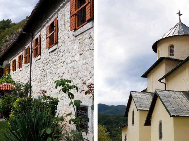 Двигаясь дальше за приключениями, подъезжаем к очень уютному и милому монастырю, который затерялся в горах и известен своими фресками. Здесь можно будет набрать воды, продегустировать и купить домашнее черногорское вино: черничное, ежевичное, малиновое и т.д. Выбор впечатляет! Есть напитки и покрепче. Мы запаслись черничным, оно понравилось больше всего.