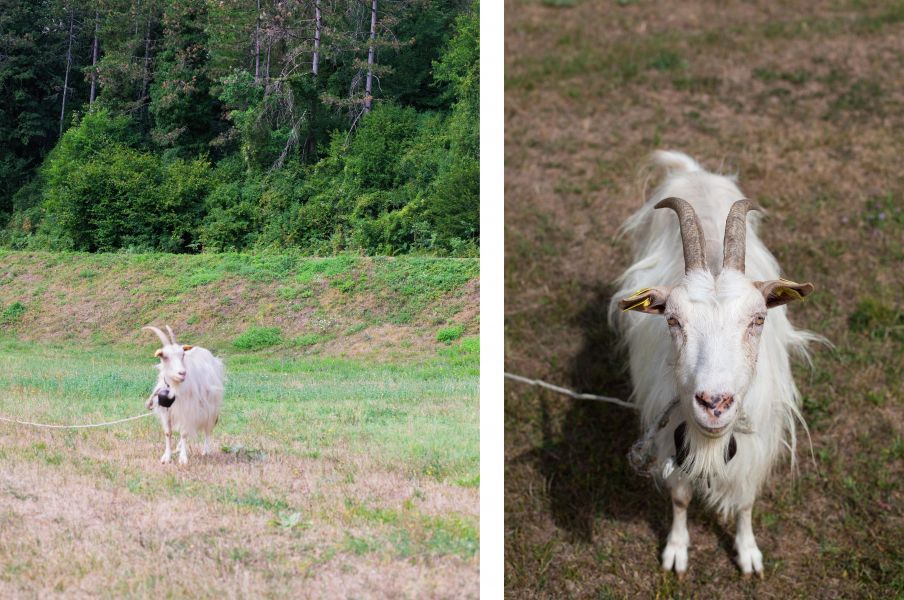 И можно познакомиться с милыми козочками, которые абсолютно ручные. У этой, что на фото, нос в форме сердечка.