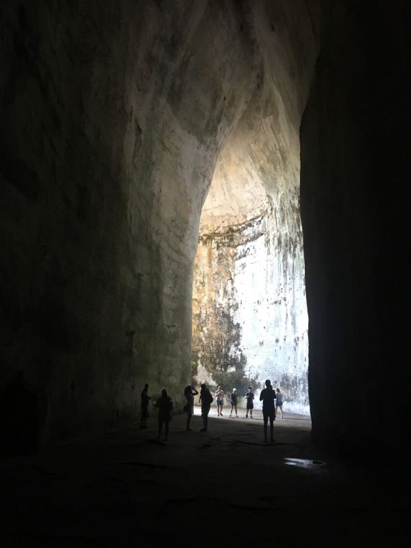 Огромная пещера, 65 метров в ширину и 23 места в высоту спряталась в самом центре парка. Здесь невероятная акустика, и малейший звук усиливается стократно. Поэтому внутри нередко можно встретить музыкантов, поющих, играющих на самых разных инструментах. По преданиям старины, пещера была вырублена по приказу деспота Дионисия, чтобы подслушивать разговоры пленных.