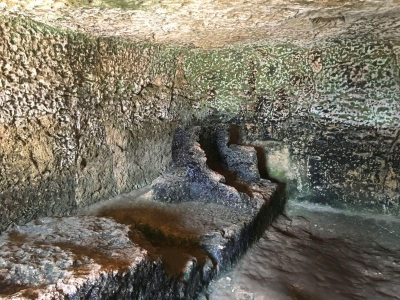 На фото можно увидеть вырубленные в камне кровать и "кресло".