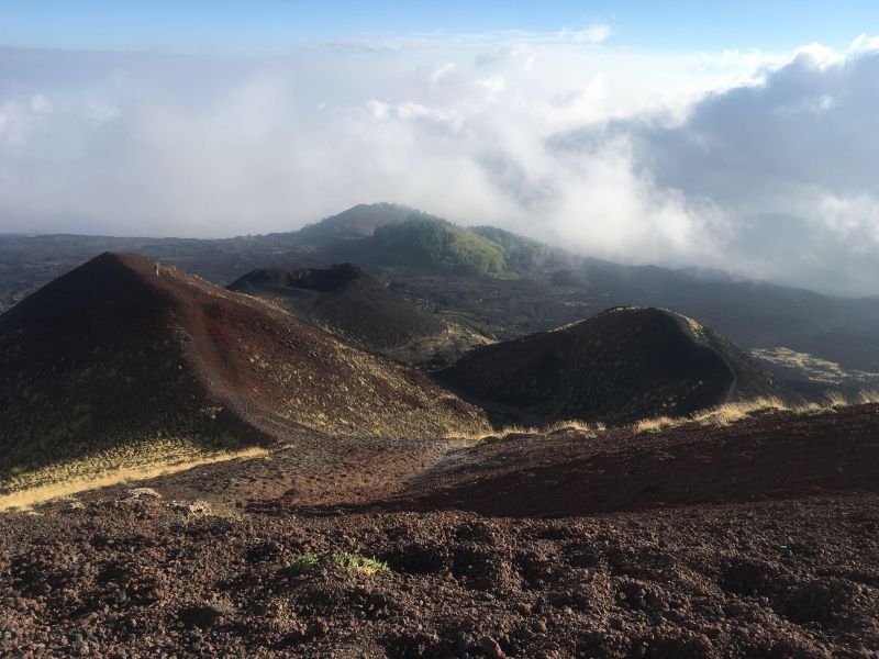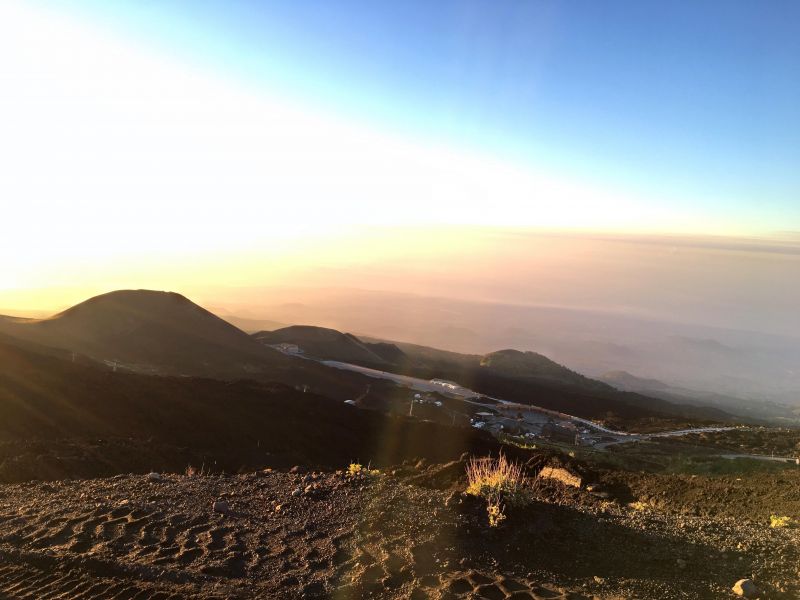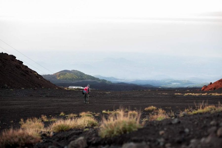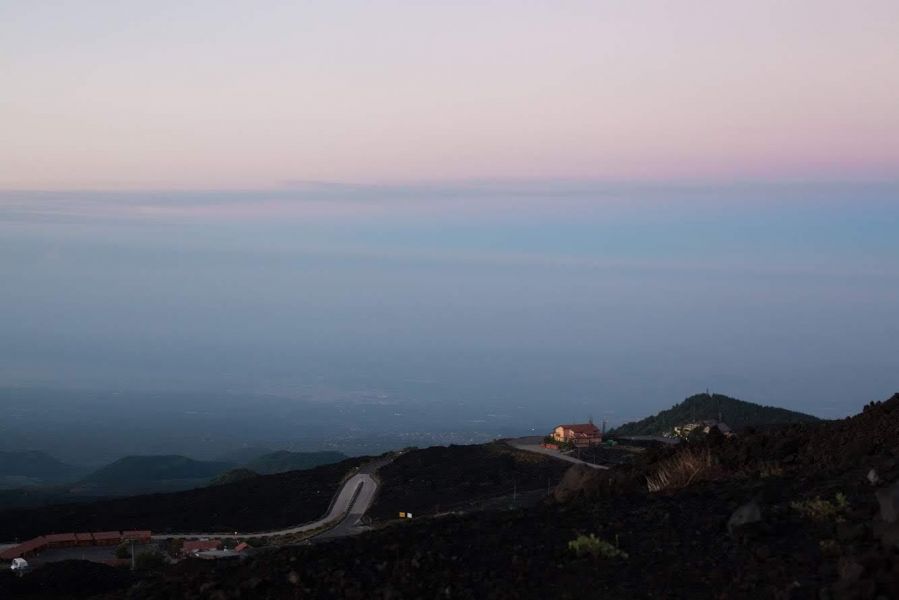 Этна был обязательным, если не главным пунктом «must see» в Сицилии, но выдвинулись мы к нему совершенно спонтанно, посмотрев с утра прогноз погоды. Синоптики предвещали всего один солнечный и теплый день, а дальше – дожди и грозы. Поэтому решение было принято молниеносно - собрали сумки и рванули. По дороге заехали в маркет и забронировали жилье в Николоси – одном из самых ближайших населенных пунктов к вулкану. Поспали всего пару часов и выехали посреди ночи, ведь очень хотелось встретить рассвет возле одного из кратеров. Несмотря на полдня в дороге и жуткий недосып, это того стоило: усталость испарилась при одном взгляде на небо. В 5 утра было жутко холодно и темно. Фонарики спасали на первом участке пути к первой вершине. Только мы туда взобрались, как небо заиграло красками, открывая невероятные виды на низлежащие кратеры и Катанию, светящуюся огоньками, как елка в Рождество.