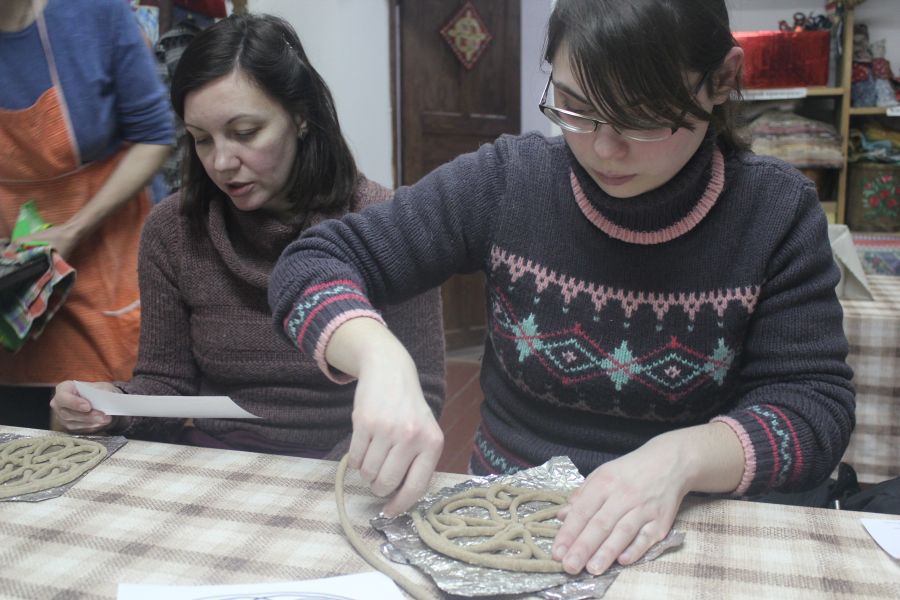 В центре ремесел "Берегиня" любой желающий может научиться делать каргопольские тетерки - узорчатые обрядовые пряники из ржаной муки.