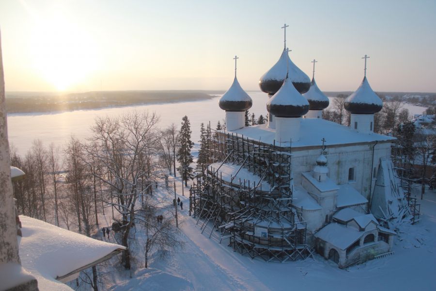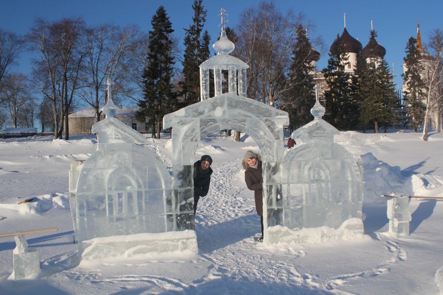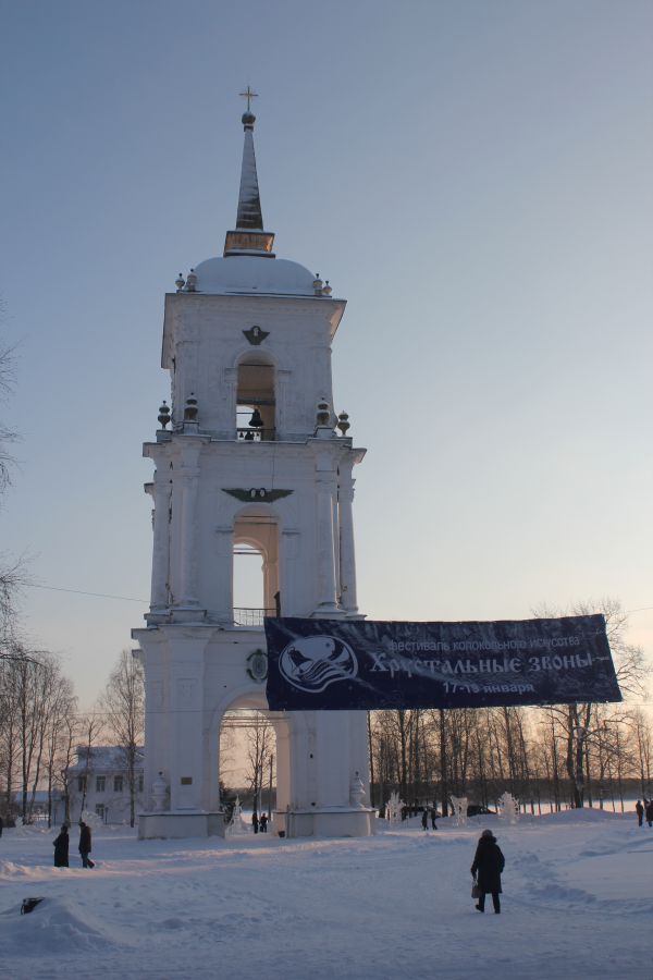 Фестиваль "Хрустальные звоны" в Каргополе - это и ночной колокольный концерт с последующим отогреванием чаем или еще чем-нибудь покрепче, и купание в проруби, и ледовые, но не менее хрустальные скульптуры у подножия соборной колокольни, и радушные сотрудники каргопольского музея - организаторы фестиваля и много чего ещё. Этой зимой в Каргополе по местным северным меркам было тепло и солнечно. Но как бы там тепло не было, ночью на колокольне ты ощущаешь себя полярником на ответственном задании.
