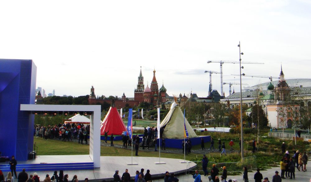 В субботу, после дня рождения, пошла в парк Зарядье - именно по его подобию в Краснодаре Галицкий организовал аналогичную прогулочную зону, я там весной была. К слову сказать, у Галицкого поинтереснее получилось, аккуратнее, ухоженнее, что ли. Зато в парке Зарядье в это время проходил фестиваль Русского географического общества, и было там довольно интересно - и настоящий шаман с бубном, звуки которого пробирали до дрожи, и карта Сибири 1698 года, начерченная пером вручную, и извлечённые из вечной мерзлоты два львёнка и мамонтёнок - их привезли в Москву уже второй раз, и я не думаю, что смогу их увидеть когда-либо ещё.