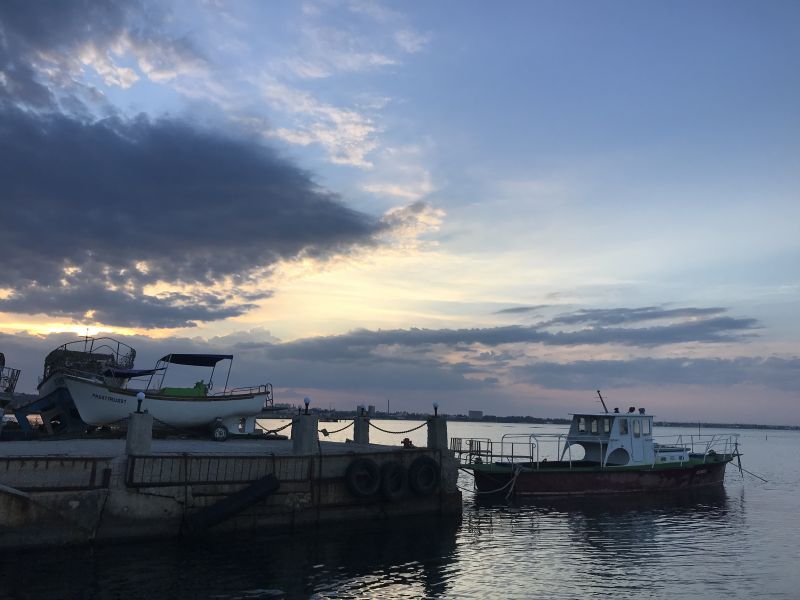 Так же если не полениться и продолжитьиди прямо можно поити к Чумке. Так местные называют местечко, где оброзовались такие домики из гаражей для лодок. Не пугайтесь, хоть там и охрана, днем туда можно. Но лучше или прийти на рассвете или на закате. Просто что б посидеть, выпить вина, сьесть арбуз. Днем там местные купаются. да и водорослей многовато.