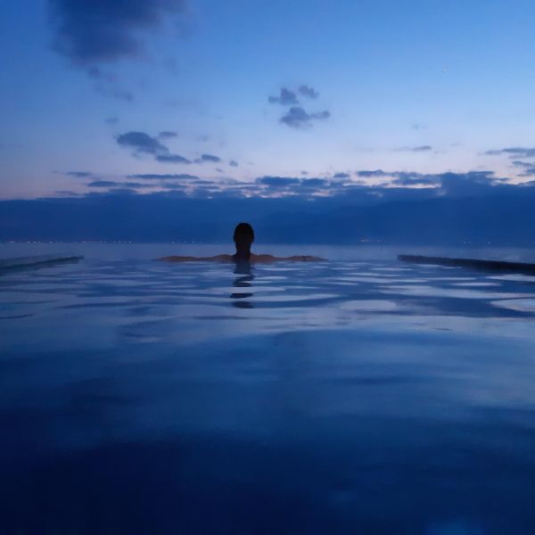 Бухта Герас. Источники выходят на поверхность из глубины 2500 м. Температура воды 39,5 градусов. На противоположном берегу залива огни греческих деревень, над головой несметное количество звёзд в огромном холодном космосе, а тебе - тепло, и каждая клеточка твоего существа благодарит Создателя за создание.