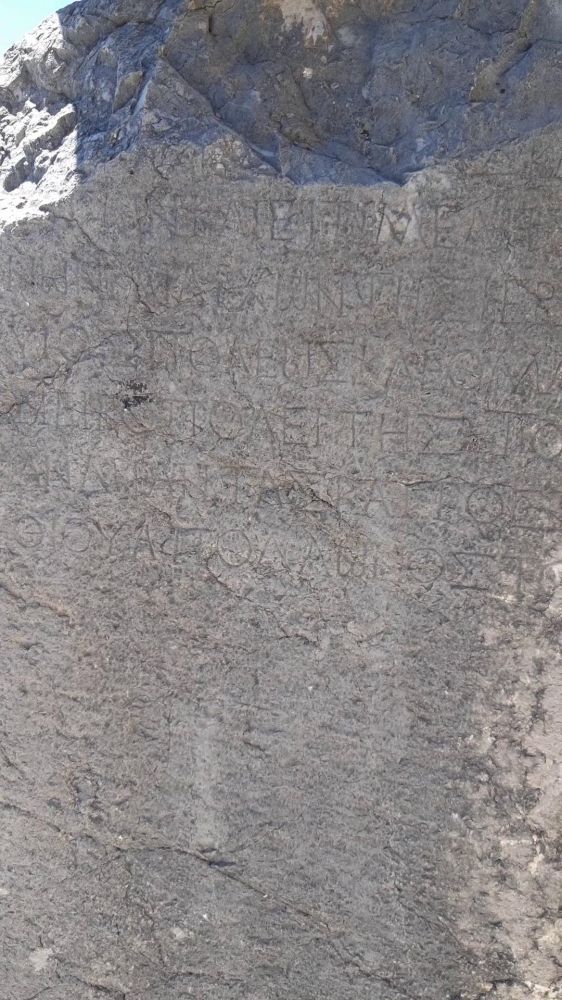 Торцевая сторона этой циклопической стены полностью испещрена древнегреческими так называемыми "освободительными" скрижалями, сообщающими имена освобождённых рабов. Более 60% этих "вольных" относятся к рабыням, цена которых была на 20% ниже, чем мужчин-рабов. "Освобождённый" обретал определённую свободу, но не гражданские права. Акт "освобождения" происходил при свидетелях и священнослужителях храма Аполлона и вступал в силу, когда имя "освобождённой/ого" появлялось на полигонической стене, служащей своеобразным подпорным фундаментом для храма Аполлона. Очень часто "свобода" невольника понималась его собственником лишь как отсутствие права "убивать или миловать по своему усмотрению". Если кто-то нарушал данное "освободительное" обещание и поднимал руку на бывшего раба, всё его состояние переходило в качестве священного дара Аполлону.