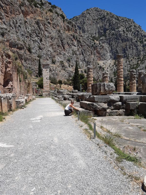 Дельфы я посещала раз семь. До этого момента, они казались мне тесными, узенькими и многолюдными. А оказалось, обман восприятия по причине чрезмерной заполненности пространства людьми. На самом же деле, главная дельфийская улица, серпантином текущая по древним руинам, довольно широкая, особенно по древнегреческим масштабам.