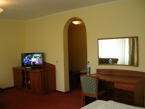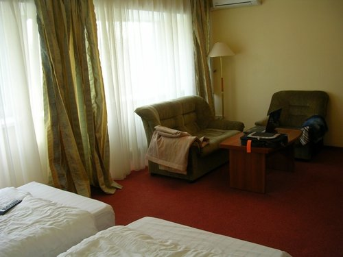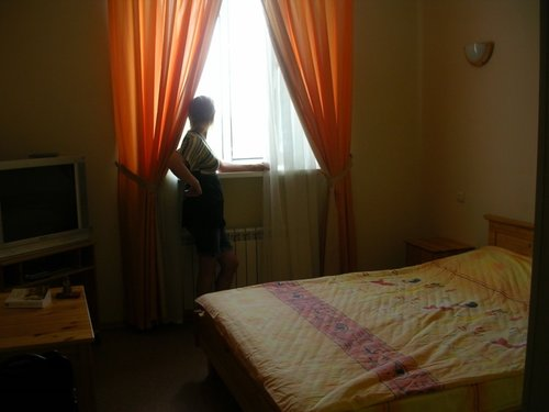 В Сергиевом Посаде заночевали в отеле «Посадский», расположенном в самом центре прямо напротив Троице-Сергиева монастыря, хотя в навигаторе сие место отдохновения обозначено как гостиница «Загорская». И хотя родом этот отель явно тоже из советского времени, но впечатление произвёл неизмеримо лучшее, чем «Которосль» в Ярославле. Двухместный полулюкс вместе с завтраком обошёлся нам в 3700 рублей, единственный минус — отсутствие собственной охраняемой парковки, машину пришлось оставить просто у центрального входа.