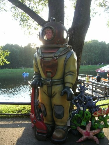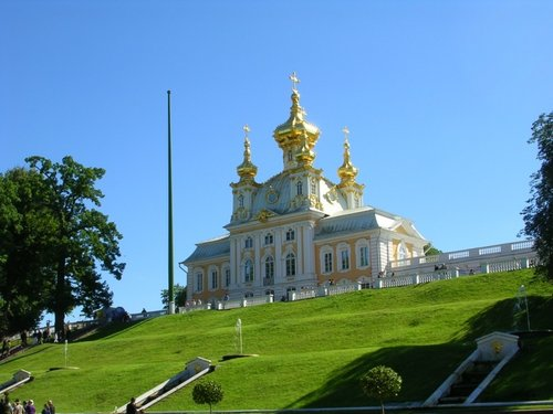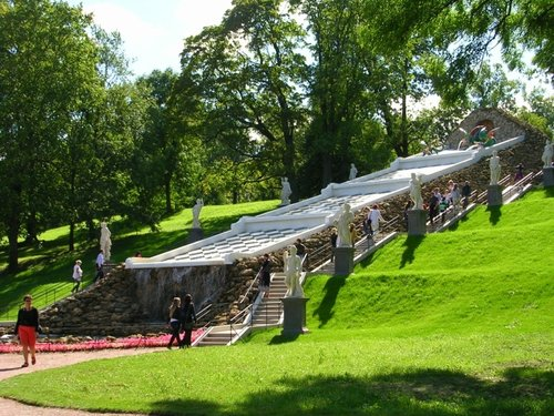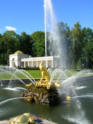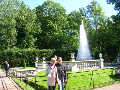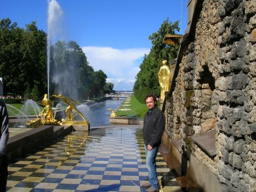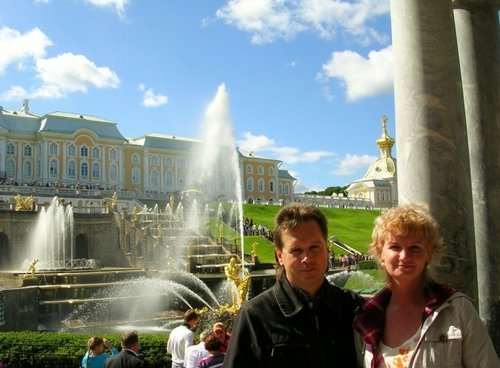 Через несколько дней погода нам всё-таки улыбнулась, и мы отправились в Петергоф — центр притяжения всех туристов. Оставив машину у входа в верхний парк, мы отправились на знакомство с, пожалуй, самым грандиозным после самого Петербурга замыслом Петра первого — Петродворцом. И действительно — впечатляет. Отловив у входа в нижний парк экскурсовода, мы устроили с его помощью двухчасовую познавательную прогулку по Нижнему парку, с посещением гротов и пещер, расположенных под дворцом. В сам дворец, к сожалению, не попали, уж больно очередь была велика, оставили на другой раз.