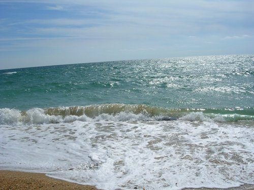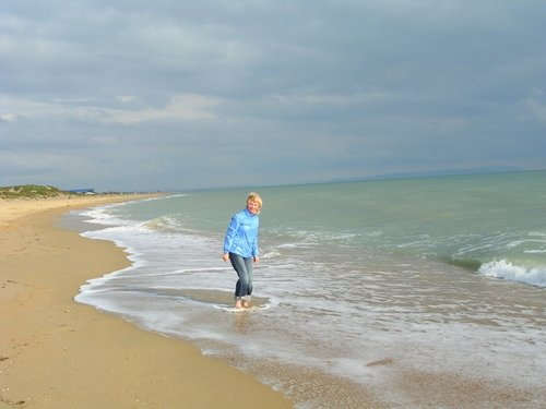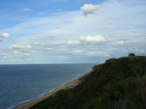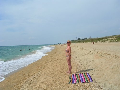 Возвращались в Джигинку мы другой дорогой, рядом с Азовским морем и через известную курортную станицу Голубицкая. Азов не такой солёный, как Чёрное море и пляж там преимущественно ракушечный.