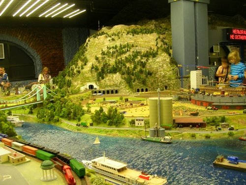 Так как погода на следующий день опять была не лучше, чем в предыдущий, то мы решили провести день в музее Гранд-макет. Уверен, не все питерцы знают или были в нём, не говоря уж о гостях города. Примечателен он тем, что на площади в 800 квадратных метров расположен собирательный образ России — от Дальнего Востока до Калининграда. Сделано это всё в виде макета, причём действующего: автомобили ездят по дорогам, поезда движутся по рельсам, происходит смена дня и ночи, причём с учётом часовых поясов, запечатлены различные сценки из жизни. Для того, чтобы всё это внимательно разглядеть, нужен не один час. Впечатление остаётся, конечно, колоссальное, интересно будет всем — и детям и взрослым! И что важно — макет постоянно достраивается!