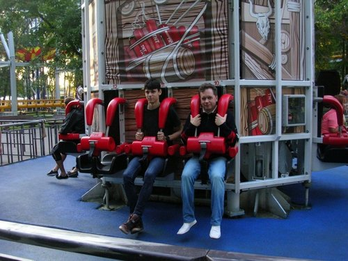А мы с Виталиком к одному из безумных аттракционов. Хотя вот на следующий не рискнули: