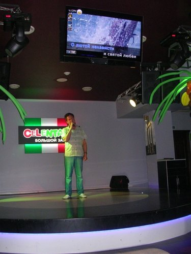 Само заведение понравилось: большой зал уступом вверх, посетители отделены друг от друга, хорошая аппаратура, большая сцена. Ввиду понедельника народу было совсем мало, а первые два часа мы были вообще в гордом одиночестве. Поэтому напелись от души, правда, солировал из нашей компании в основном я, да и на сцену из всех посетителей рискнул выйти опять же только я,