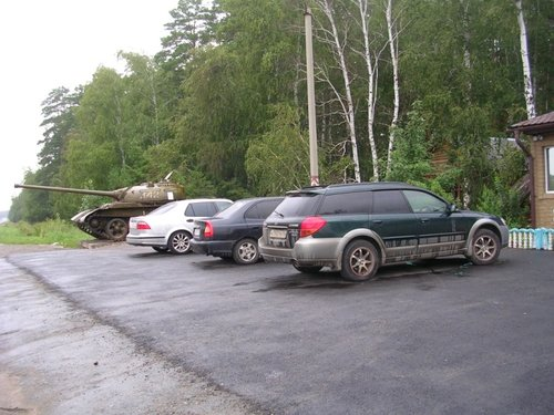 Далее на фото: «трасса» под Бердюжьем, кафе недалеко от Кургана, (на танке кто-то приехал пообедать, ха-ха!) и стоянка возле гостиницы «Привал» под Челябинском.